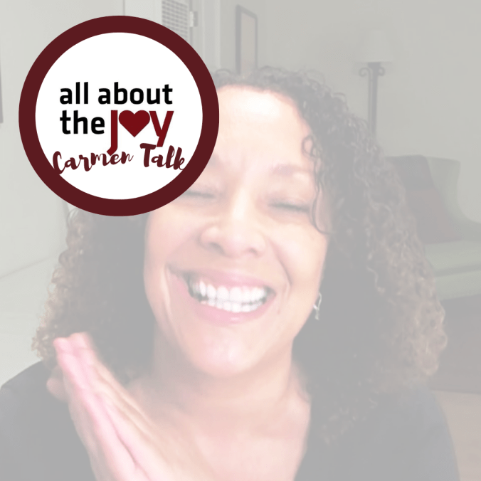 All About The Joy is the larger umbrella for all my work — a space that includes several different shows, each with its own tone and purpose. Carmen Talk, Culture & Consequence, The Private Lounge and Friday Night Lives